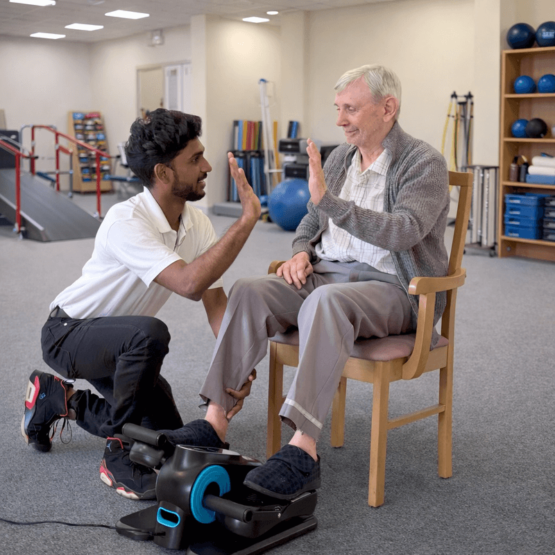 Registered to practise in both India and the UK, he is also a certified Moving & Handling Champion and Falls Champion, committed to delivering safe, effective, and person-centred treatment for every individual.